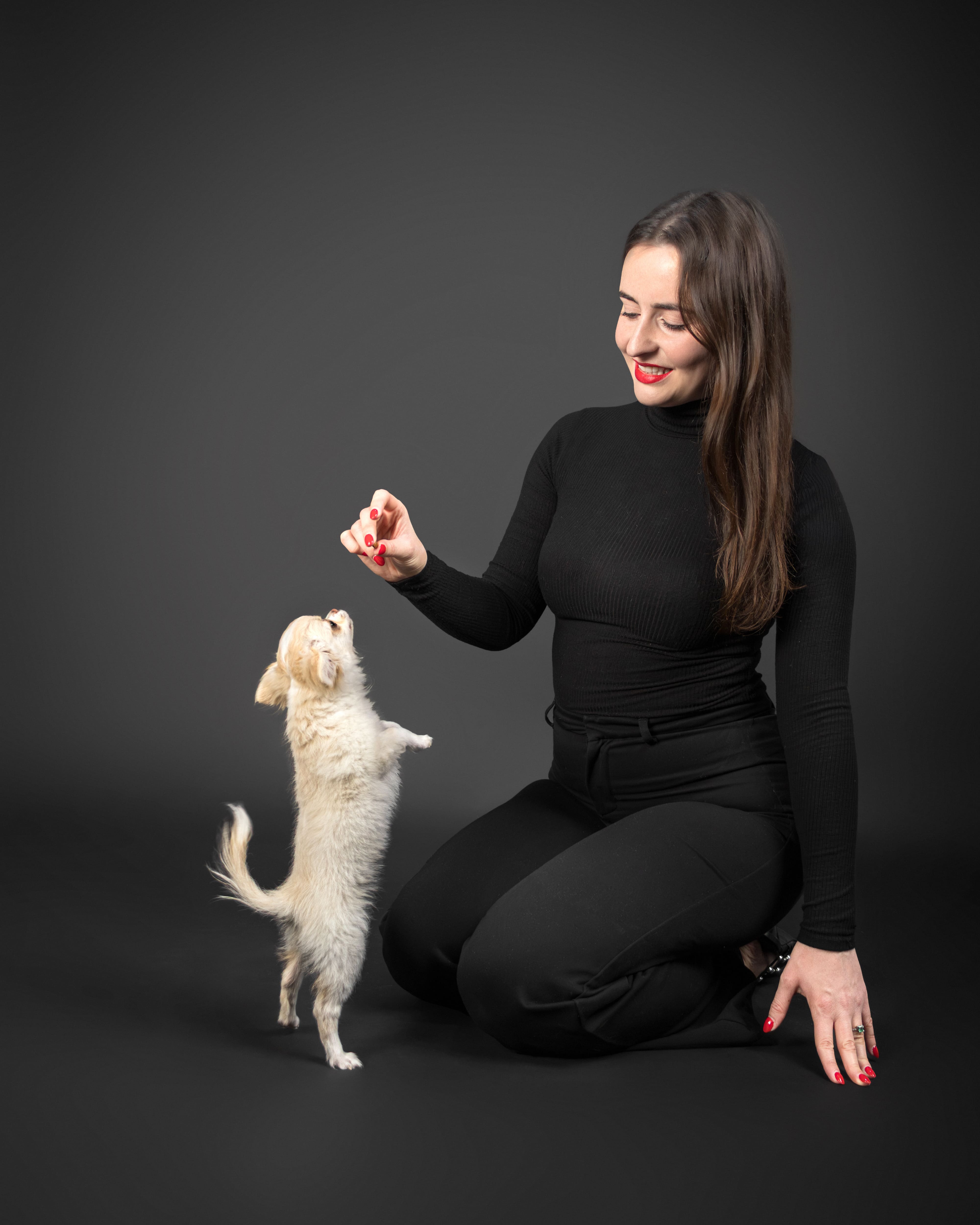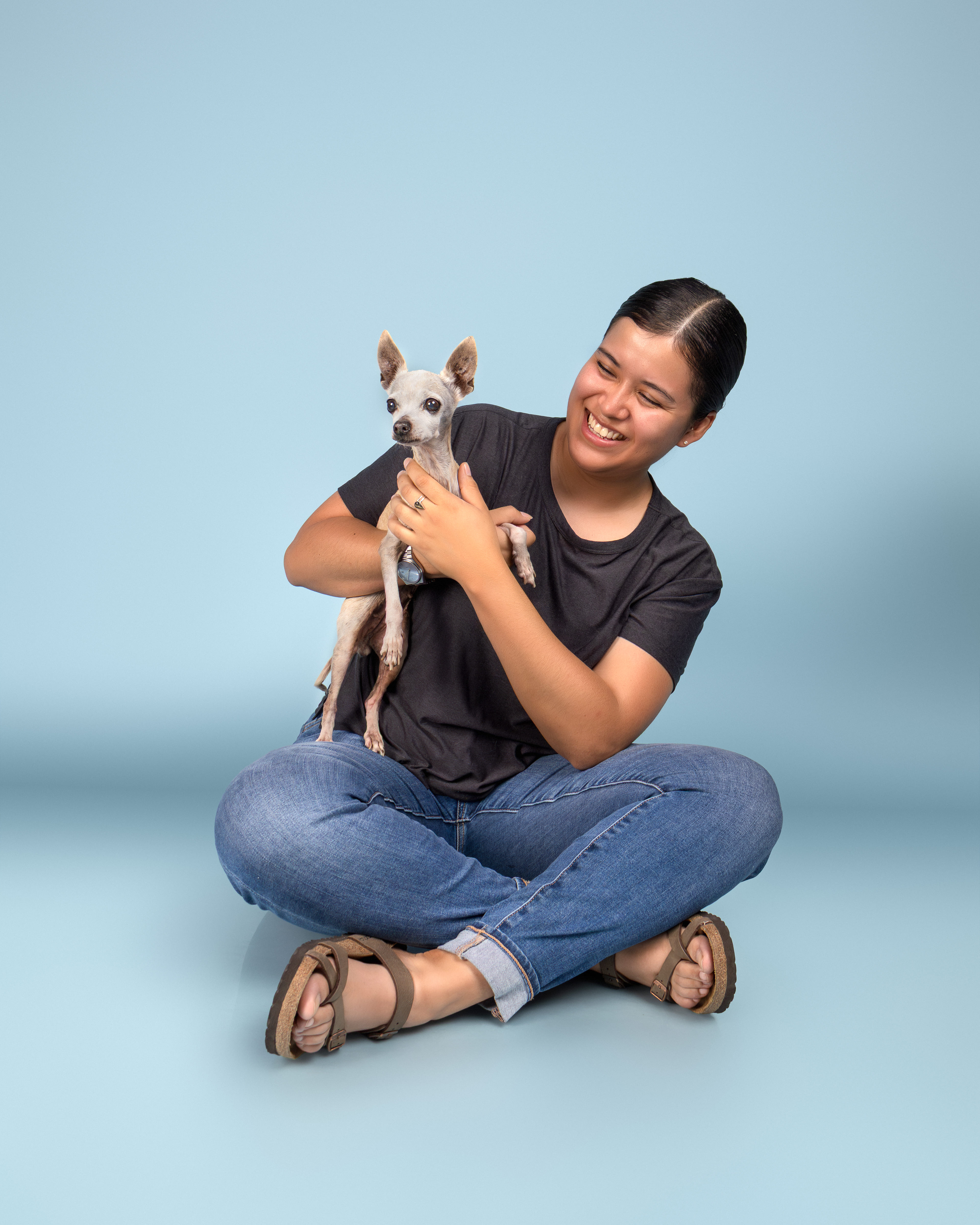 Queriendo tener fotos hermosas con él, descubrí lo difícil que era lograrlo con el celular: siempre salía movido. Esa necesidad personal se convirtió en la idea de crear sesiones en estudio diseñadas especialmente para capturar retratos auténticos que celebren el vínculo entre las personas y sus mascotas.